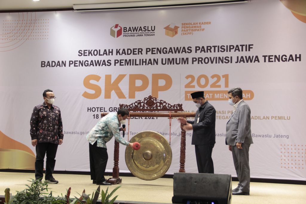 SEMARANG – Ketua Bawaslu RI Abhan meminta agar para kader Sekolah Kader Pengawas Partisipatif (SKPP) menjadi simbol penggerak pengawas partisipatif di daerah masing-masing. “Kader SKPP harus jadi pioner terdepan yang mendorong masyarakat berpartisipasi dalam pemilu,” kata Abhan saat membuka acara SKPP Tingjkat Menengah Bawaslu Provinsi Jawa Tengah, Senin (18 Oktober 2021).