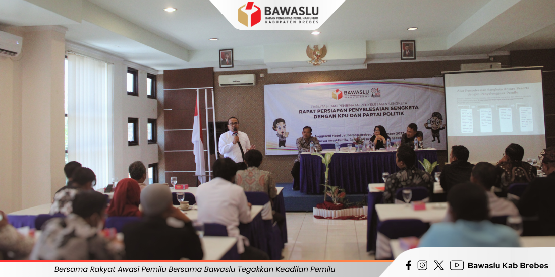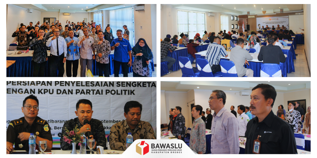 Rapat penyelesaian sengketa proses Pemilu tahun 2024 diikuti oleh berbagai instansi di Kabupaten Brebes dengan jumlah 50 orang. Peserta kegiatan diantaranya terdiri dari KPU, Panwaslu Kecamatan, Partai Politik, media/jurnalis, dan Organisasi Perangkat Daerah (OPD).