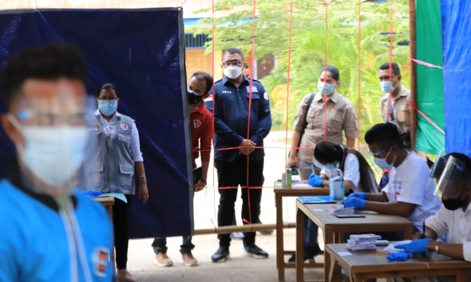 Anggota Bawaslu Fritz Edward Siregar mengawasi jalannya pemungutas suara ulang (PSU) Pilbup Sabu Raijua, Rabu (7/7/2021)/foto: Publikasi dan Pemberitaan Bawaslu[/caption]