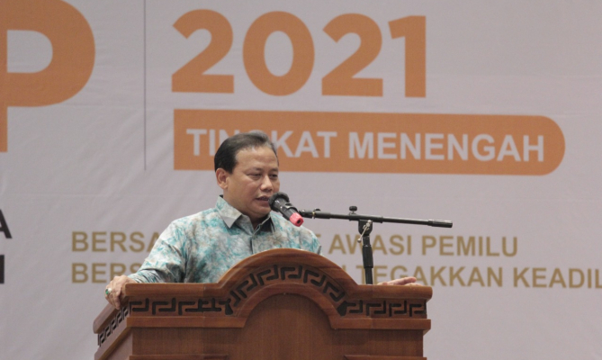 Semarang, Badan Pengawas pemilihan Umum- Ketua Bawaslu RI Abhan membuka Sekolah Kader Pengawas Partisipatif (SKPP) tingkat menengah di Provinsi Jawa Tengah, Senin (18/10/2021). Disana Abhan mengajak para kader menjadi simbol penggerak pengawas partisipatif di daerah masing-masing.