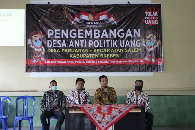 Pada Kegiatan ini dihadiri oleh Ketua Bawaslu Kabupaten Brebes dan Anggota Bawaslu Kabupaten Brebes. Rudi Raharjo Anggota Bawaslu Kabupaten Brebes menuturkan bahwa kedaulatan rakyat menjadi harapan demokrasi indonesia kedepan untuk membentuk pemimpin yang memiliki integritas tinggi. Lanjut Yunus Awaludin Zaman Anggota Bawaslu Kabupaten Brebes menambahkan bahwa dalam konsep politik uang dapat memicu terjadinya tindak dugaan korupsi yang dapat merugikan banyak masyarakat, khususnya Kabupaten Brebes. Anisul fuad Anggota Bawaslu Kabupaten Brebes yang biasa sering disapa abah fuad, hadir di kegiatan Pengembangan Desa Anti Politik Uang di Desa Pabuaran. Abah fuad memberikan gambaran bahwa politik uang menjadi tolak ukur kepercayaan diri calon saat mencalonkan diri pada kontestasi politik. Sambung ketua Bawaslu Kabupaten Brebes Wakro, pada kegiatan ini akan berlansung selama 2 hari dengan materi dan konsep yang berbeda pada kegiatan Pengembangan Desa Anti Politik Uang di Desa Pabuaran, metode ini berupaya untuk memberikan gambaran yang tidak terlalu monoton dalam penyampaiannya sehingga antusias masyarakat terhadap Tolak Politik Uang dapat tersampaikan.