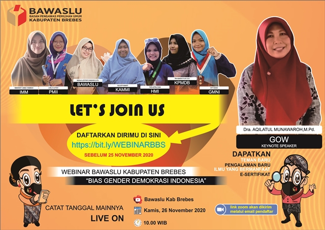 Atas dasar itulah Bawaslu Kab. Brebes menggelar webinar dengan tema "Bias Gender Demokrasi Indonesia" secara virtual, Kamis (26/11/2020).