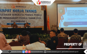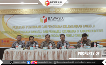 Brebes – Rabu (7/09/2023), Bawaslu Kabupaten Brebes mengadakan kegiatan Fasilitasi Pembinaan dan Penguatan Kelembagaan Bawaslu dengan tema “Konsolidasi Kebijakan Bawaslu dan Panwaslu Kecamatan di Kabupaten Brebes Dalam Pengawasan Penyelenggaraan Pemilu Tahun 2024” bersama Ketua/Anggota Panwaslu K