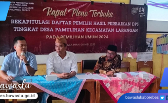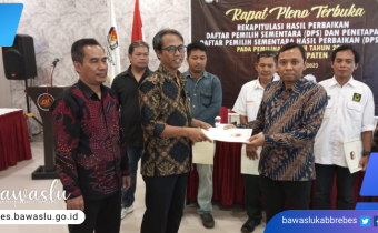 Brebes - Bawaslu Kabupaten Brebes melakukan pengawasan rekapitulasi daftar pemilih hasil perbaikan Daftar Pemilih Sementara (DPS) oleh KPU Kabupaten Brebes pada Rapat Pleno Terbuka Rekapitulasi Hasil Perbaikan Daftar Pemilih Sementara dan Penetapan Daftar Pemilih Sementara Hasil Perbaikan yang di