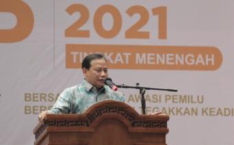 Semarang, Badan Pengawas pemilihan Umum- Ketua Bawaslu RI Abhan membuka Sekolah Kader Pengawas Partisipatif (SKPP) tingkat menengah di Provinsi Jawa Tengah, Senin (18/10/2021). Disana Abhan mengajak para kader menjadi simbol penggerak pengawas partisipatif di daerah masing-masing.